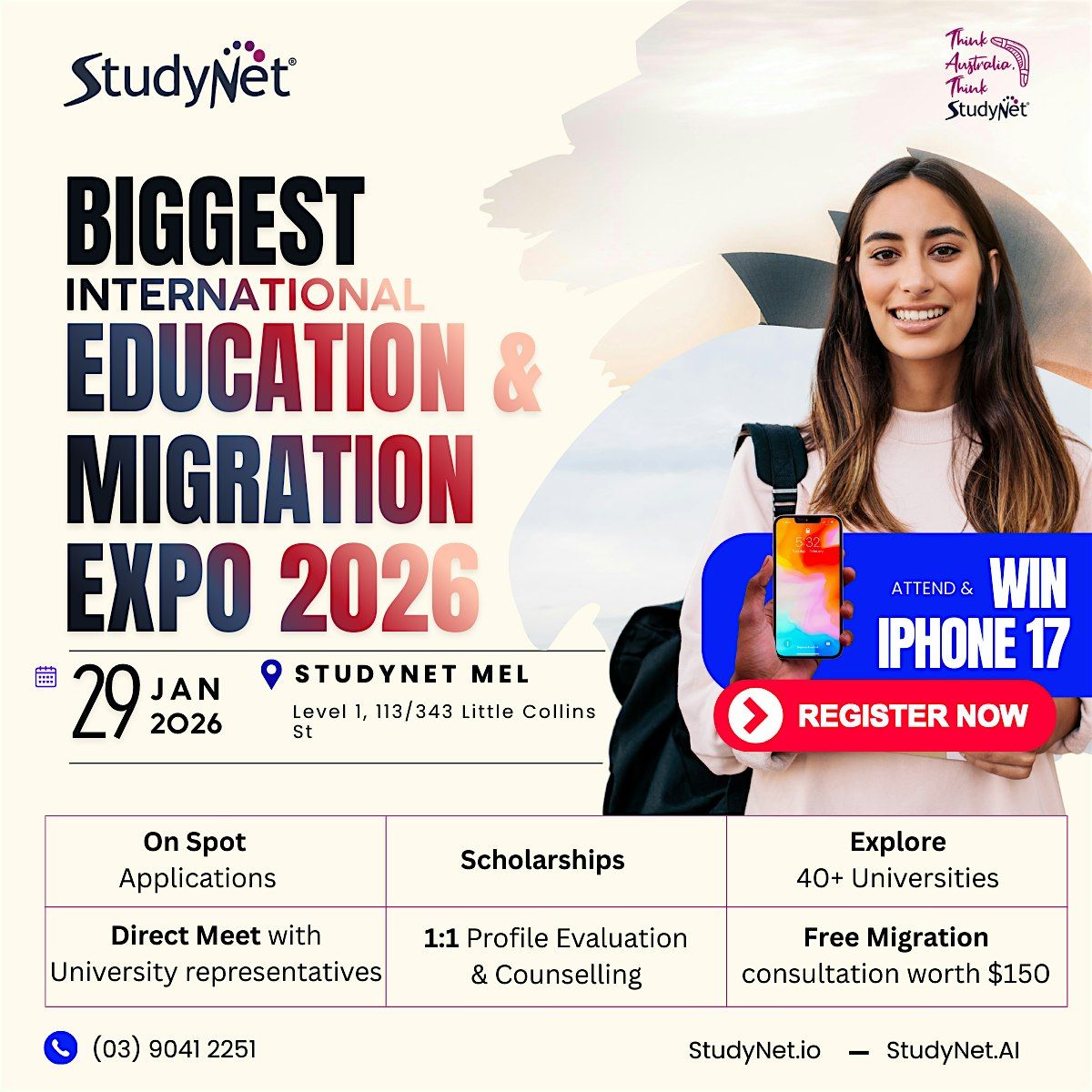 Get ready to explore your future at the Biggest International Education and Migration Expo 2026 happening live in Melbourne! Meet top institutions, chat with migration experts, and discover tons of opportunities to study and settle abroad. Whether youโre aiming for a new education adventure or planning your next big move, this eventโs where you want to be. Donโt miss out on connecting with like-minded people and professionals โ all happening in person!