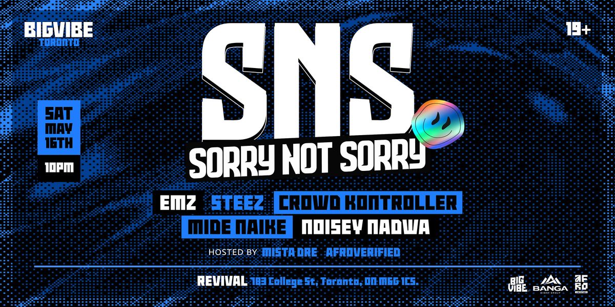 Join us for the 2nd edition of Sorry Not Sorry (SNS) in collaboration with Banga Events Group. After a sold-out first edition, we are doing it again, this time bigger!!! So come and enjoy non-stop music and dancing while we vibe to the best of Afrobeats, Amapiano, RnB, Dancehall and everything in between from an all-star line up!