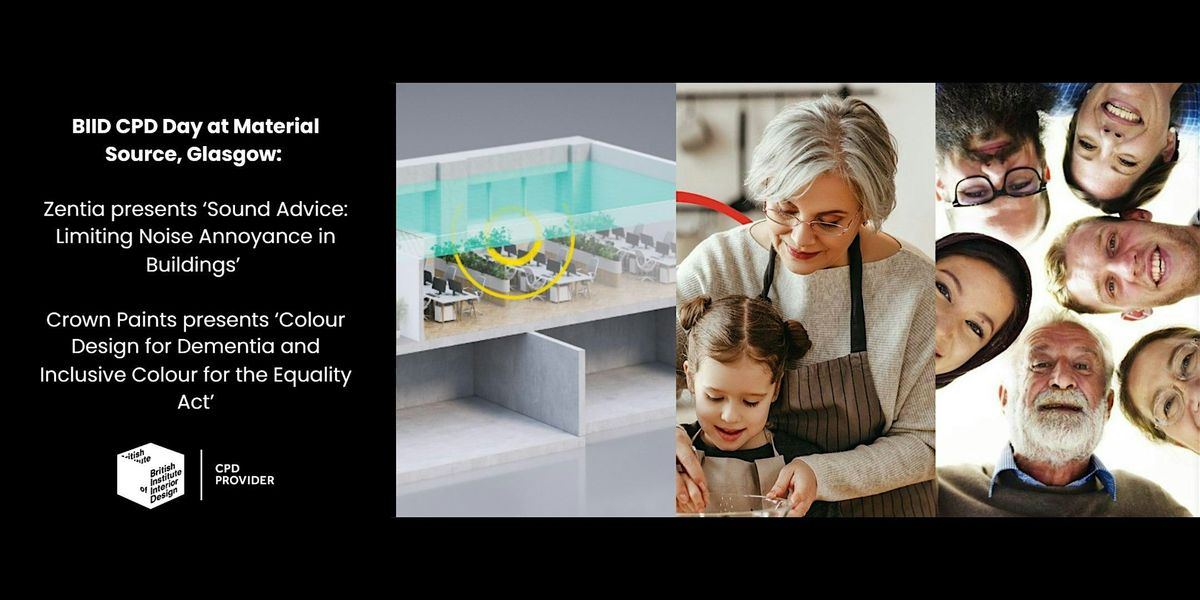 Come along and join the British Institute of Interior Design at Material Source in Glasgow for a BIID CPD learning day with Crown Paints and Zentia. Enjoy networking at lunchtime along with CPDs on limiting noise annoyance, inclusive colour and colour design for dementia.