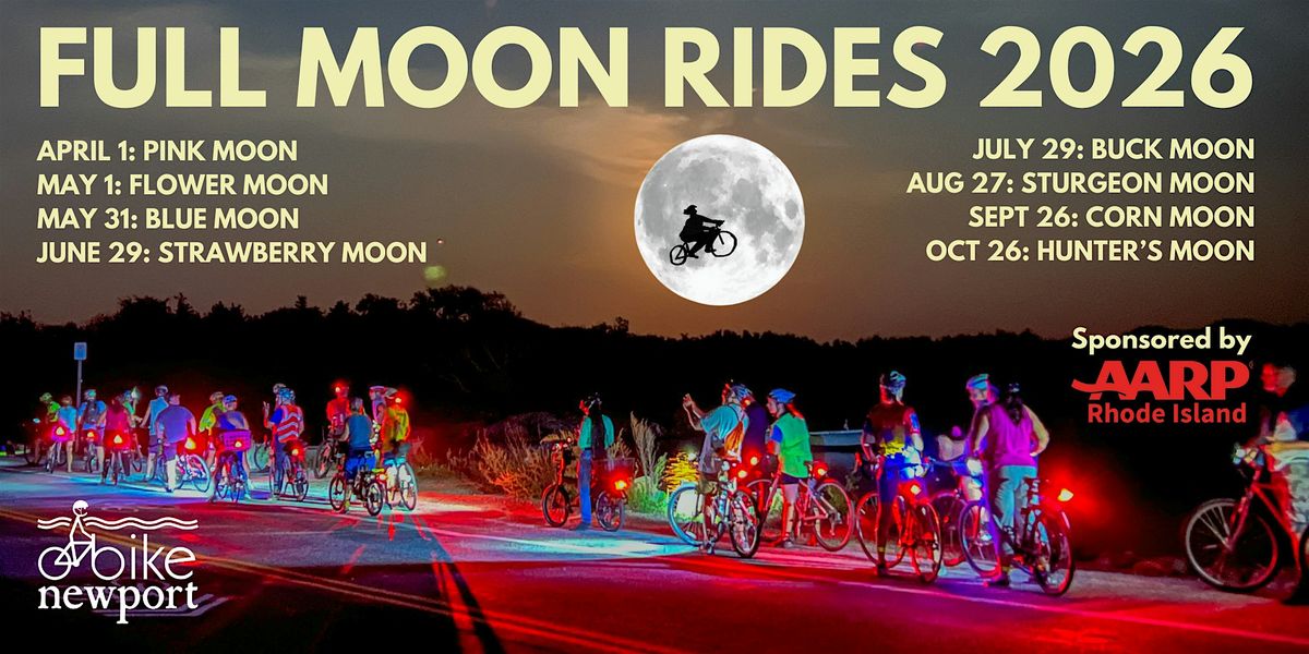 Bike Newport is delighted to present another unforgettable season of our Full Moon Rides Sponsored by AARP Rhode Island. The secret is out about these highly enjoyable group rides around the beautiful Ocean Drive, made all the more beautiful by colorful Newport sunsets and the glistening full moon glow on the water. Be sure to register while space remains, and we look forward to riding with you.