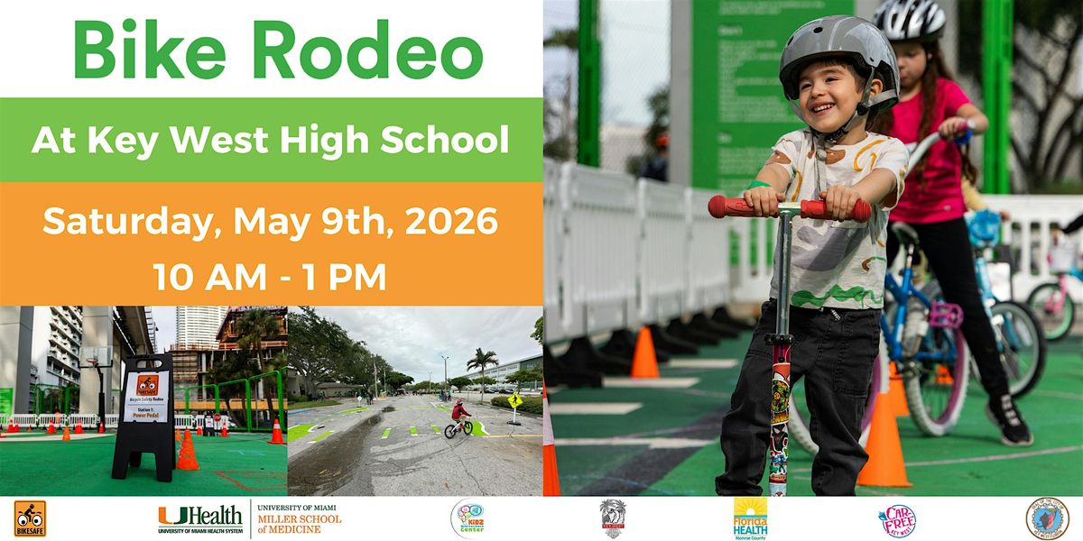¡Nos complace presentar BikeSafe @ The Keys, una serie de talleres y eventos tipo «rodeo ciclista» dirigida por la Facultad de Medicina Miller de la Universidad de Miami y el KiDZ Neuroscience Center! Estos rodeos ciclistas enseñarán a los niños habilidades de manejo de la bicicleta y de seguridad vial. Esta actividad GRATUITA se llevará a cabo en el estacionamiento de la escuela secundaria Key West High School, ubicada en 2100 Flagler Ave, Key West, FL 33040. Ubicación en