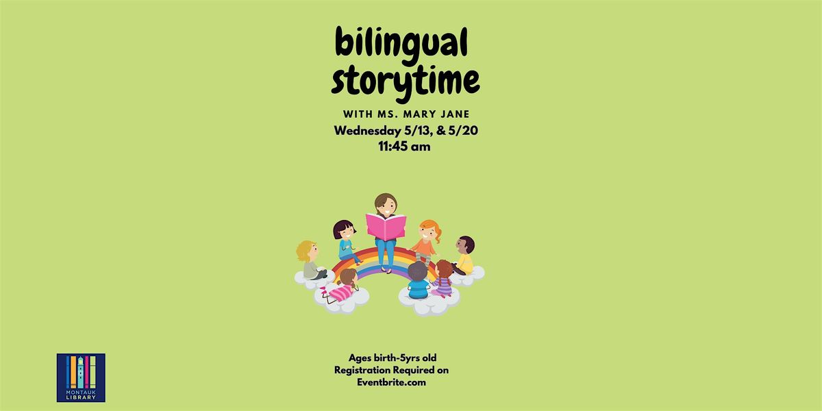 Join us for some fun with Bilingual Story Time with Ms. Mary Jane. Ages birth-5yrs old. Registration is required.