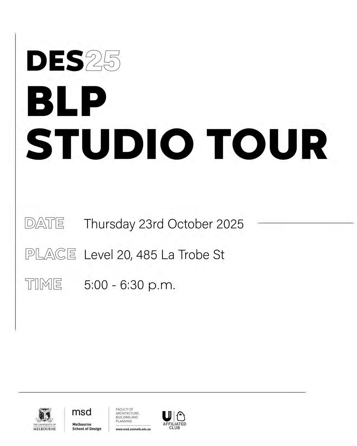 You’ll explore the studio, hear from the BLP team, and take part in a Design Talk session focusing on Designing with Country — a chance to contribute ideas and engage in thoughtful conversation about how design can meaningfully connect to Country.