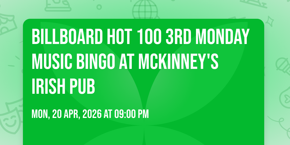 Take a trip across the charts with a Billboard Hot 100 edition of Music Bingo at McKinney’s Irish Pub, featuring hit-filled playlists from 1996 and 2018. This night blends 90s pop, alternative, and hip-hop favorites with modern chart-toppers that dominated playlists, radio, and dance floors in the late 2010s.