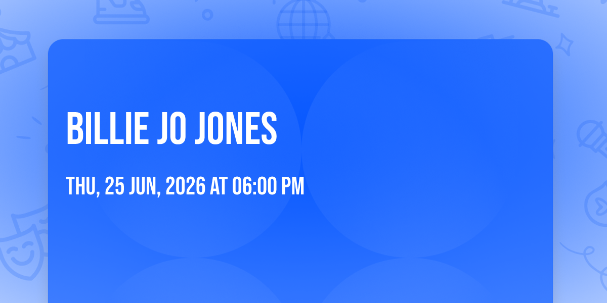 ✨ Discover the extraordinary at Billie Jo Jones, where magic meets reality in ways you've never imagined! 🏛️ Set in Gruene Hall nestled in bustling New Braunfels, TX, this event promises to be a landmark occasion. 📅 Taking place on June 25th, 2026 at 06:00 PM, it's going to create an atmosphere where every moment becomes a cherished memory. 🌟 Immerse yourself in an experience crafted with attention to every detail, designed to surprise and delight at every turn. They have worked tirelessly to ensure this event exceeds all expectations, bringing together elements of entertainment, innovation, and pure joy. 🎊 Don't miss your chance to be part of this remarkable journey!http://maps.seatics.com/GeneralAdmissionEvent_2018-05-11_1514_SVGC_tn.gif