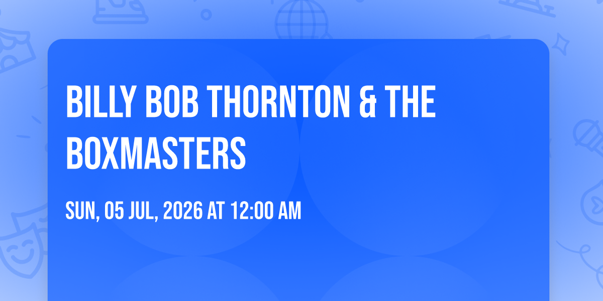 📍 Location: 39.1205, -94.5488🎉 Welcome to Billy Bob Thornton & the Boxmasters, where dreams come alive and possibilities are endless! 🏛️ Join us at Knuckleheads in the heart of Kansas City, MO for an event that defies expectations. 📅 On July 5th, 2026 at 12:00 AM, be part of something truly extraordinary as we bring together innovation, entertainment, and pure magic. ✨ Every aspect has been carefully designed to ensure an unforgettable experience for all our guests. Whether you're seeking adventure, inspiration, or simply a break from the ordinary, this event promises to deliver beyond your wildest dreams. 🎊 Prepare for a journey into the extraordinary!