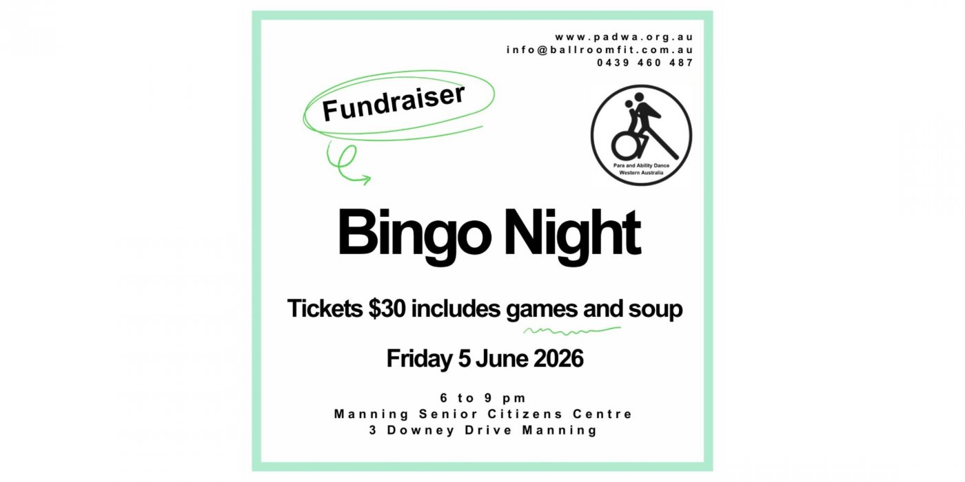 Para and Ability Dance WA Inc. is hosting a Bingo Fundraiser to help financially support our members with travel and accommodation expenses for International Para DanceSport Championships.