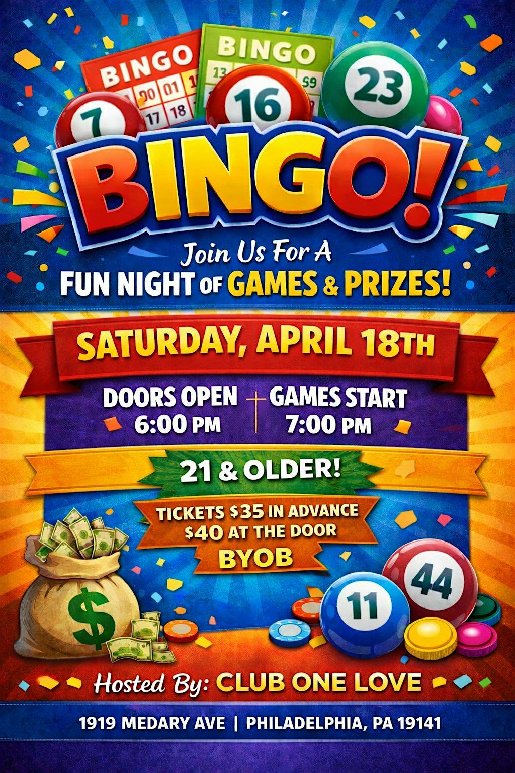 Join us for an exciting night of Bingo, prizes, and community fun —don’t miss your chance to WIN BIG!About this Event