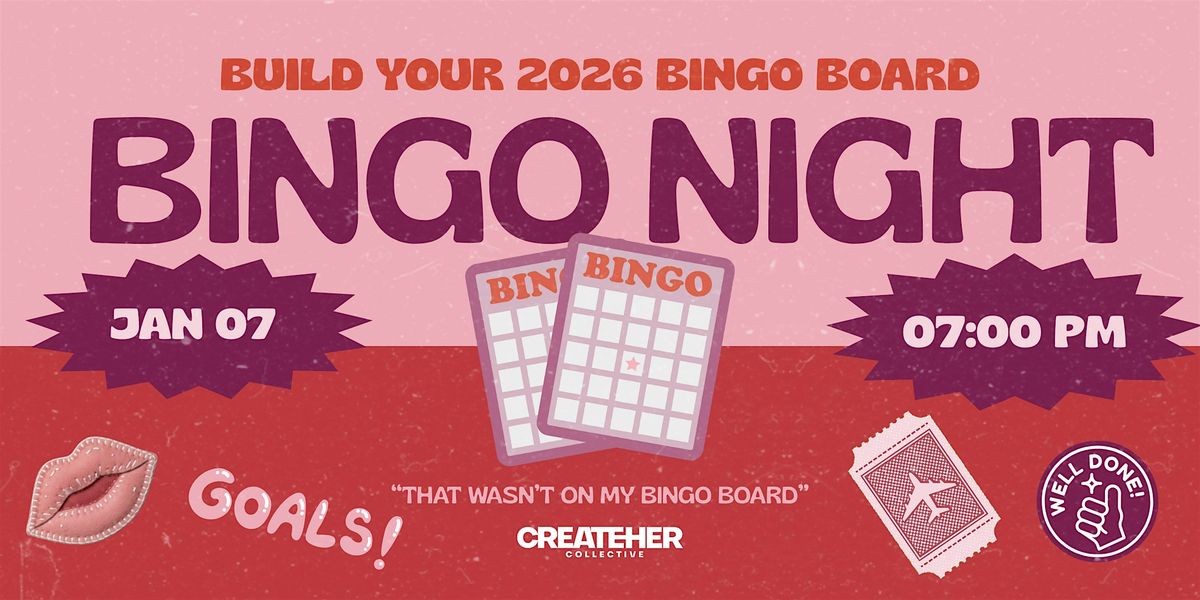 This interactive community gathering invites CreateHERs to design their own 2026 Bingo Board — a visual and playful way to map goals, dreams, creative milestones, wellness intentions, and life wins for the year ahead. Think vision boarding meets game night, with a little magic in between. You will leave with your own laminated bingo game board to play along throughout the year.