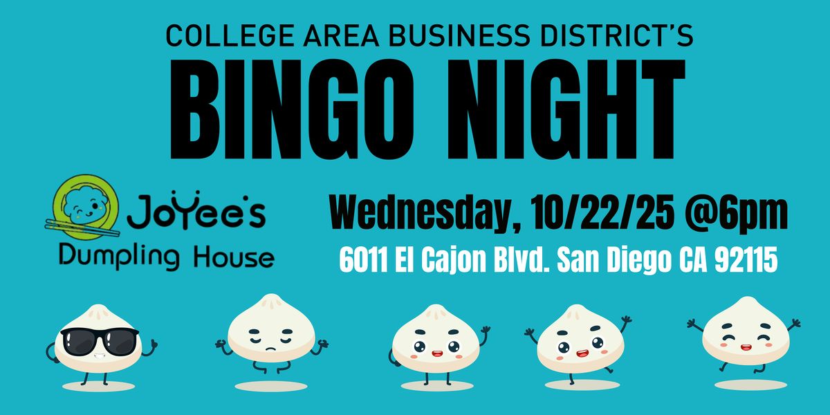 Come out and eat great food, play fun BINGO and win awesome prizes while supporting Joyee’s new College Area location and the College Area Business District!