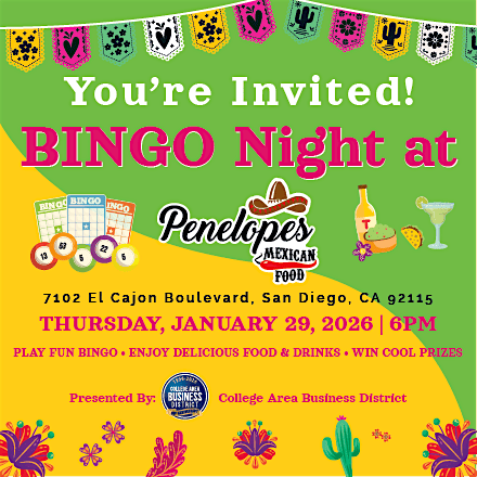 You’re invited to a night of great food, drinks, laughs, and BINGO at Penelope’s Mexican Food!