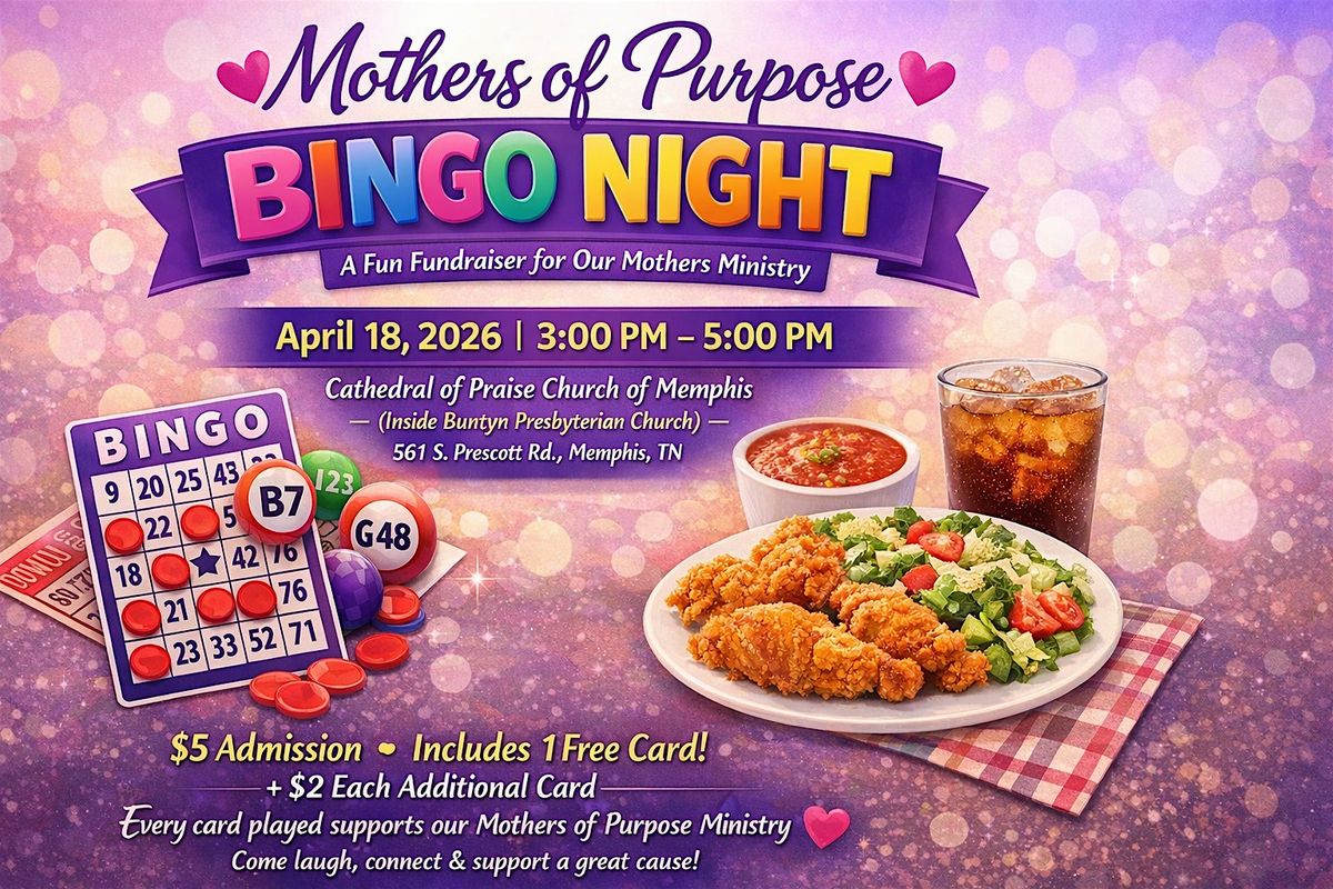 Get ready for a night of laughter, connection, and exciting prizes at Mothers of Purpose Ministry Bingo Night!