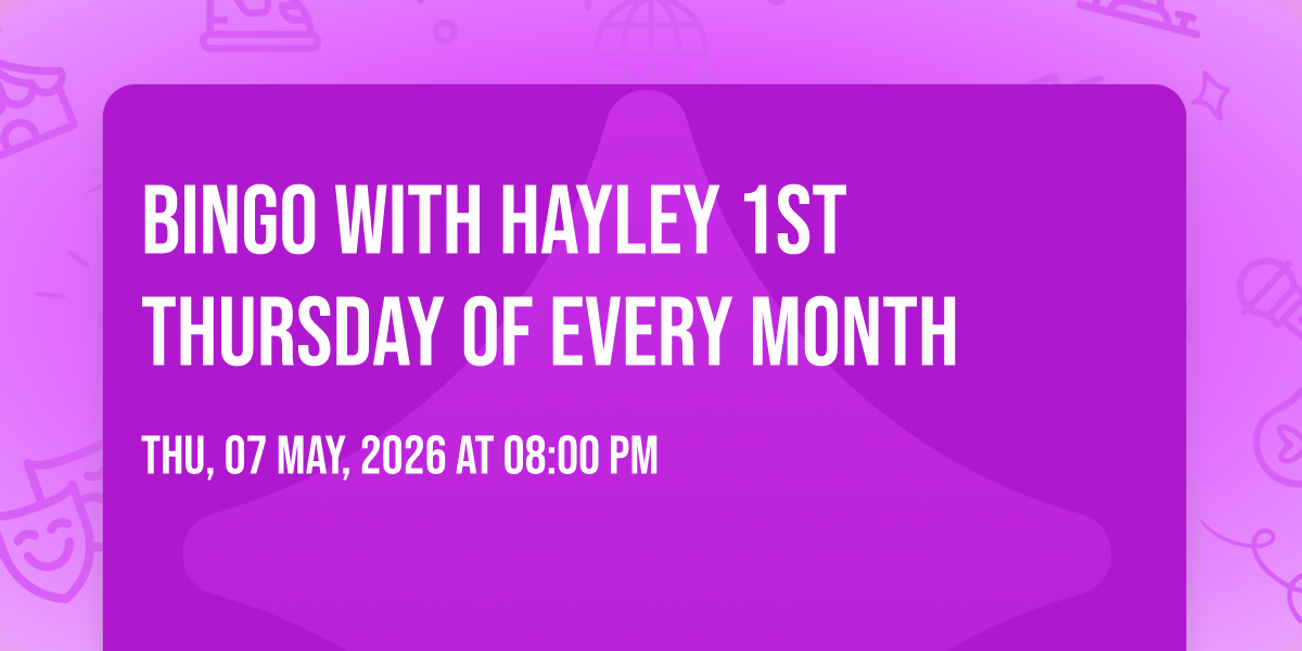 Join for an evening of fun, and lively Bingo Hosted by Hayley 🤗