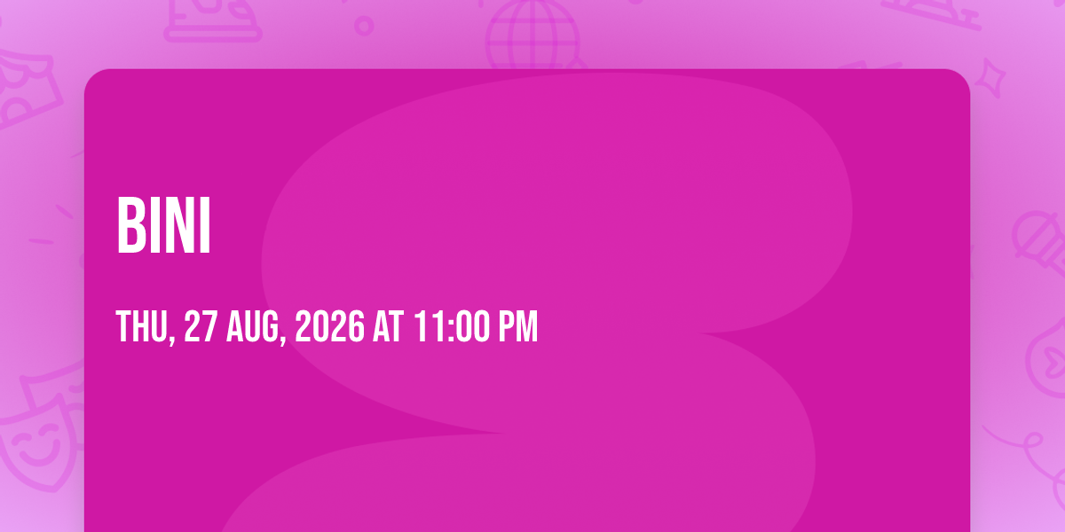 📍 Location: 43.7708, -79.5113🎉 Welcome to BINI, where dreams come alive and possibilities are endless! 🏛️ Join us at Sobeys Stadium in the heart of Toronto, ON for an event that defies expectations. 📅 On August 27th, 2026 at 11:00 PM, be part of something truly extraordinary as we bring together innovation, entertainment, and pure magic. ✨ Every aspect has been carefully designed to ensure an unforgettable experience for all our guests. Whether you're seeking adventure, inspiration, or simply a break from the ordinary, this event promises to deliver beyond your wildest dreams. 🎊 Prepare for a journey into the extraordinary!