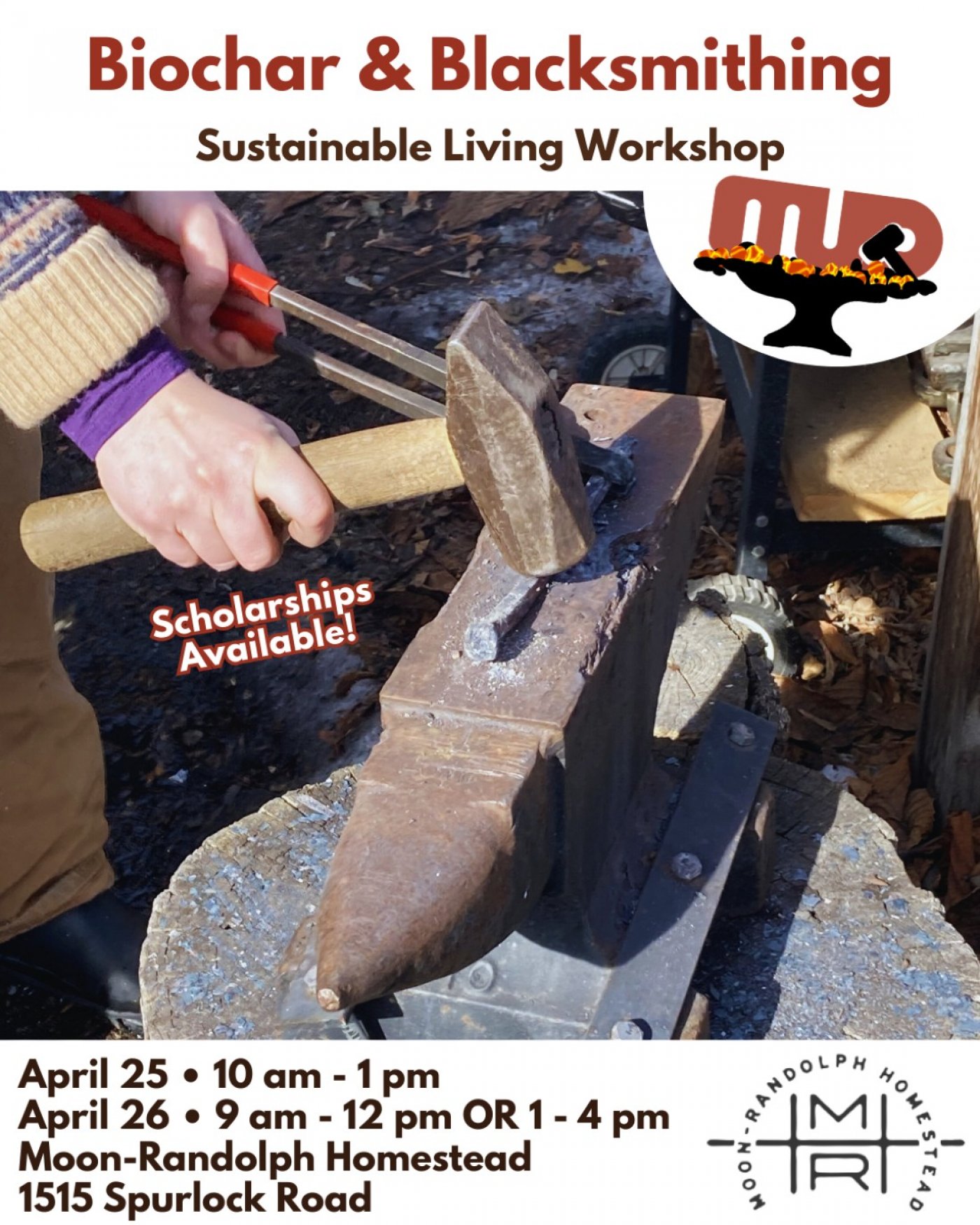 Step back in time at the Moon-Randolph Homestead to explore the foundational skills of creating biochar and blacksmithing over this 2-day workshop! On day 1, participants will learn how to create the biochar fuel, which we will then use on day 2 for Blacksmithing. Using charcoal-fired forges, we’ll heat iron and use a hammer and an anvil to shape the molten metal! Use your creativity and instinct to discover the beauty and strength behind this traditional craft!