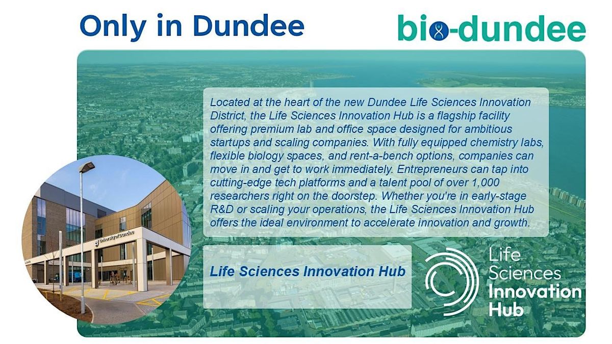 - Explore and hot desk in the Life Sciences Innovation Hub (5 James Lindsay Place, DD1 5JJ) in Dundee, including the option to tour its flexible, state-of-the-art lab and office facilities