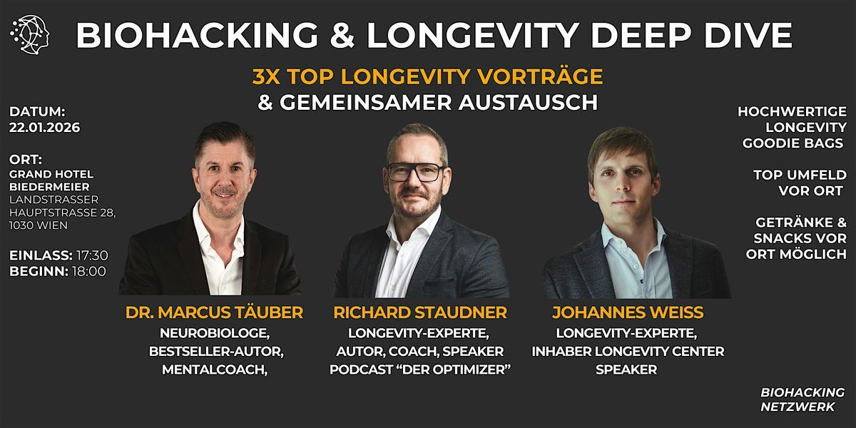✅ 3 (DREI) inspirierende Longevity-Vorträge von absoluten Top-Experten im gesamten deutschsprachigen Raum!