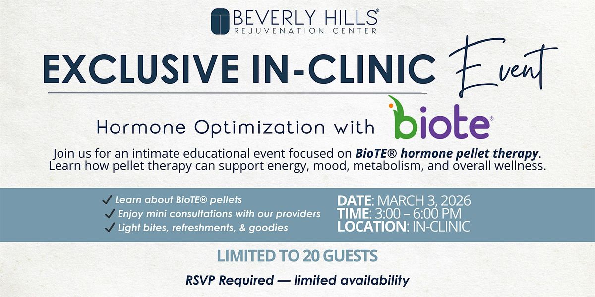 Beverly Hills Rejuvenation Center (BHRC) has partnered with Biote, the leaders in bioidentical hormone optimization, to bring you a night dedicated to reclaiming your vitality. This isn't just a seminar; it's a celebration of better health.