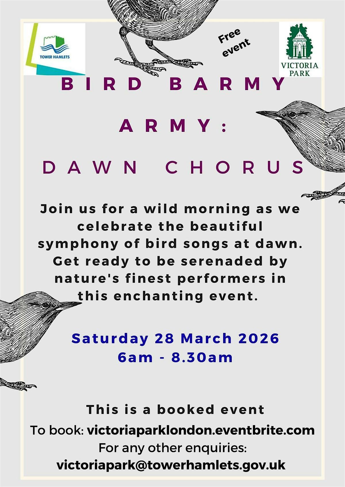 Join us for a wild morning at the V&A Building and Playground as we celebrate the beautiful symphony of bird songs at dawn. Get ready to be serenaded by nature's finest performers in this enchanting event. Bring your friends and family for a fun-filled morning of bird-watching and listening to the delightful melodies of our feathered friends. Don't miss out on this unique experience to connect with nature and start your day with a chirpy twist!