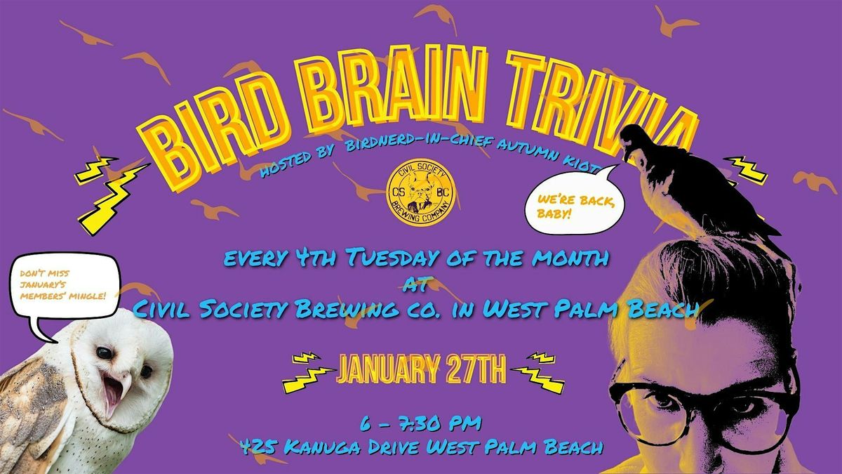 Talk birdy with us at Civil Society Brewing Co. in West Palm Beach on the fourth Tuesday of every month. Bring your flock, compete alone, or join up with some new bird-brained friends to unwind while showing off your knowledge or learning something new. No previous knowledge required, just a desire to relax and have fun with host Autumn Kioti.