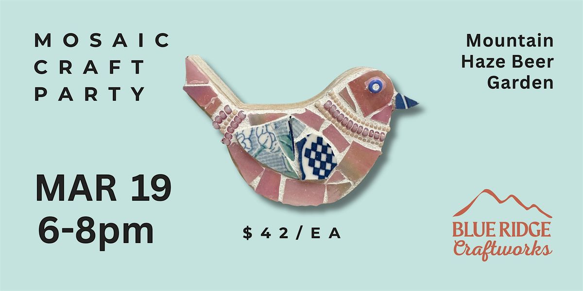 Blue Ridge birds have been part of this landscape long before we arrived, and they'll be here long after. In this hands-on mosaic workshop, you'll create your own Appalachian bird using broken porcelain plates, glass pieces, and seed beads on a pre-cut wooden base.