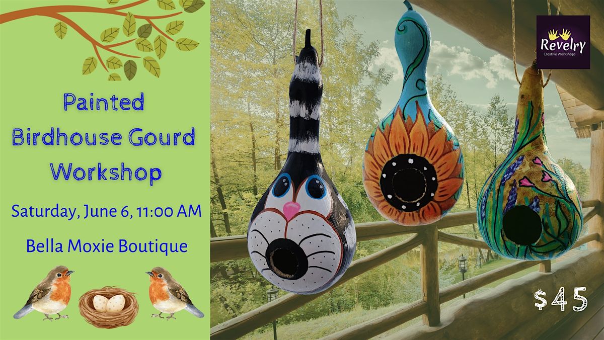 Join us for a fun & creative Birdhouse Gourd Painting Workshop where you’ll transform a dried gourd into a charming painted birdhouse. In this hands-on class, participants will learn how to prepare, paint, and decorate a natural gourd using spring color palettes, florals, patterns, and whimsical details. We’ll cover basic design techniques, tips for painting on curved surfaces, and simple ways to seal your birdhouse for outdoor display.