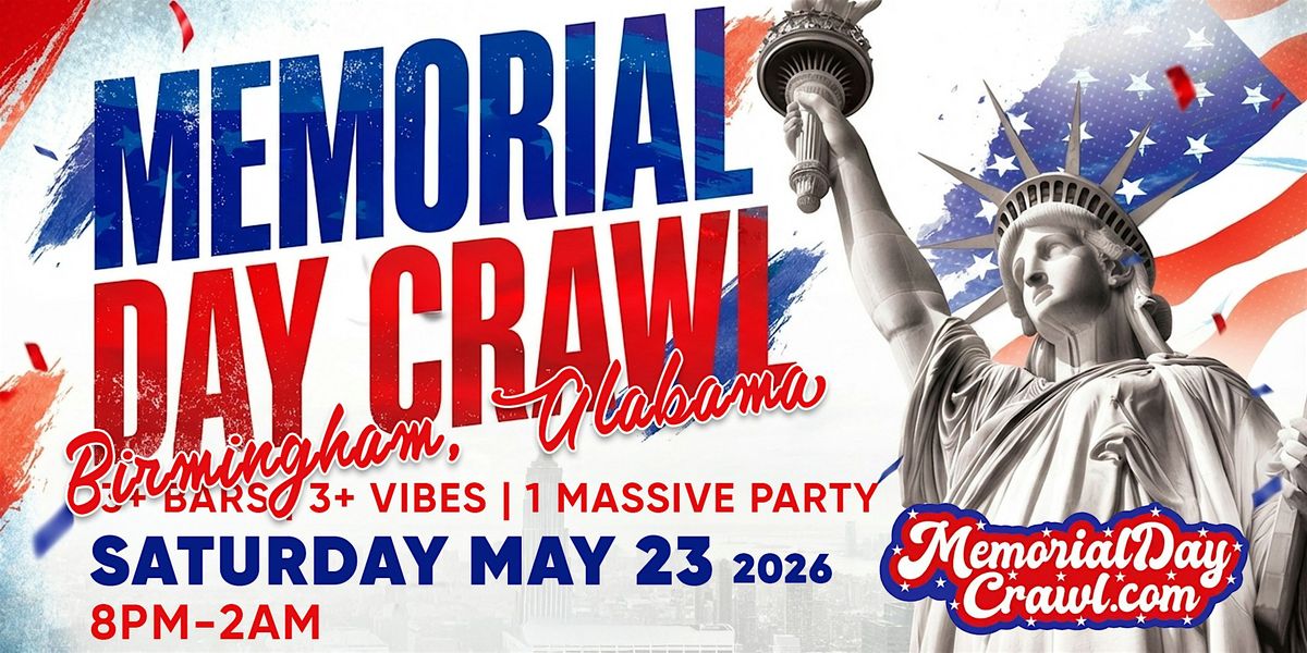 This Memorial Day weekend, Birmingham, Alabama is the place to be for a huge night of bar hopping, drinks, and nonstop party energy. Join us on Saturday, May 23rd, 2026 for the ultimate Memorial Day Bar Crawl as we take over some of the city’s hottest bars and nightlife spots for a celebration to kick off the long weekend in style. 🍻