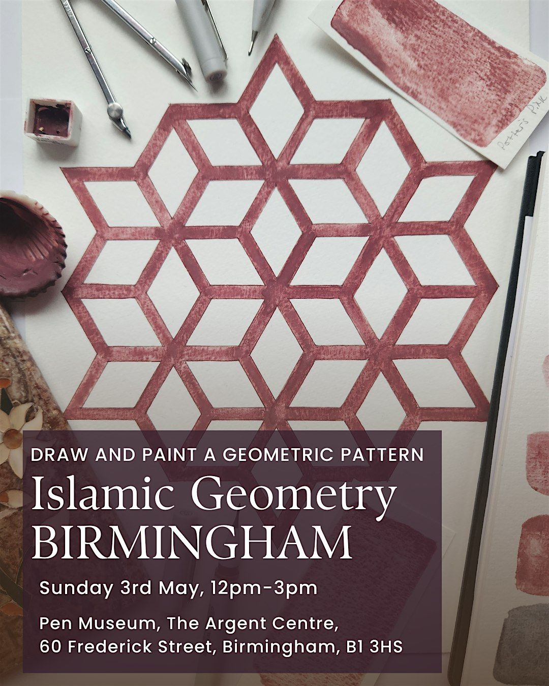 During the session we will be using a compass and ruler to create a geometric pattern template and we will go through the process of transferring and repeating the template on to watercolour paper.