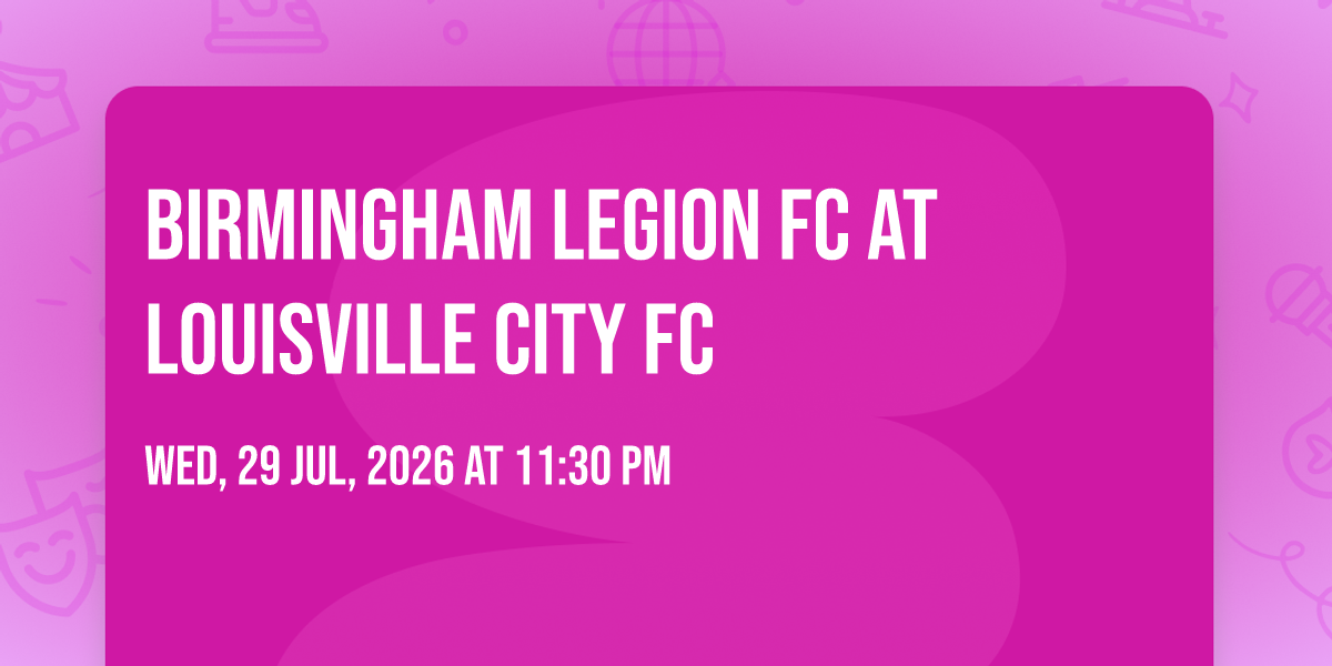 ๐ Location: 38.2596, -85.7333๐ Step into a world of wonder at Birmingham Legion FC at Louisville City FC, where extraordinary moments await! ๐๏ธ Located at Lynn Family Stadium in dynamic Louisville, KY, this event will become the talk of the town. ๐ Join us on July 29th, 2026 at 11:30 PM for a celebration that defies the ordinary. โจ This curated experience brings together the best of entertainment, culture, and community spirit. Every detail has been thoughtfully planned to ensure an unforgettable experience for all our guests. ๐ฏ Take advantage of this opportunity to be part of something special. ๐ Early registration is recommended as space is limited!