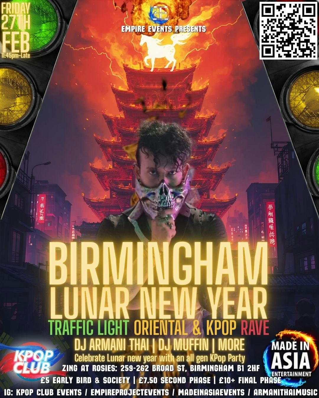 🚦BIRMINGHAM ORIENTAL LUNAR NEW YEAR TRAFFIC LIGHT PARTY🚦KPop Club X Made In Asia Oriental Lunar New Year Club Night with DJ Armani Thai | Traffic Light Party | THE MIDLANDS BIGGEST ORIENTAL PARTY | £5 Tickets for Society Members & Dance Groups | KPop KHipHop EDM & More | 27/2/26Lunar New Year is almost here. One of the bggest events in the asian Calendar is fast approaching. We are entering the year of the fire horse symbolising strength and ambition, and a time of new beginnings and letting go. In celebration, we will be playing all of the biggest favourites from all generations of KPop in tbe KPop & KHipHop room. Spend a special night with that someone, or find that love with us! @kpopclubevents , @madeinasiaevents , join together with Rosies to bring you the ultimate Oriental Lunar New Year event on Friday 27th February!