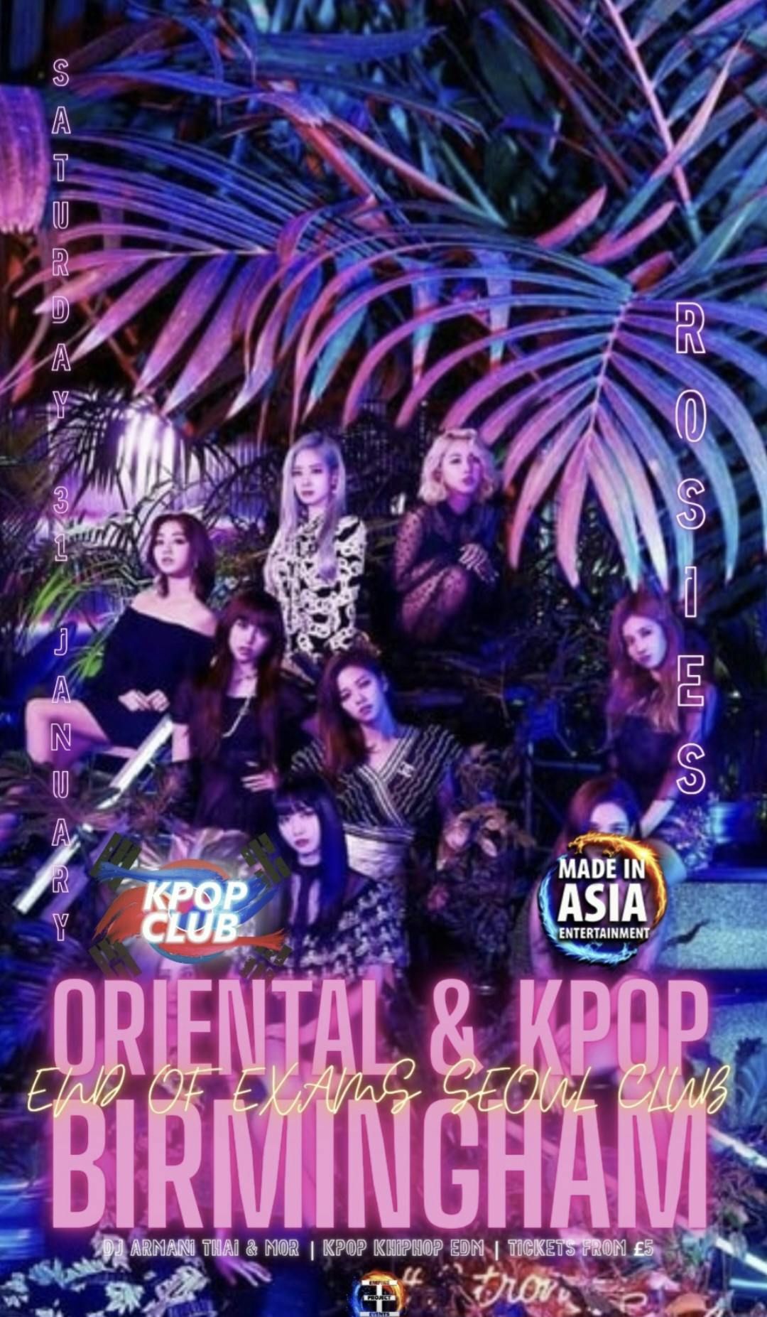 🎶BiRMINGHAM ORIENTAL END OF EXAMS PARTY🎶KPop Club X Made In Asia Oriental End Of Exams Party with DJ Armani Thai | Neon Seoul Retro Rave | THE MIDLANDS BIGGEST ORIENTAL PARTY | £5 Tickets for Society Members & Dance Groups | KPop KHipHop EDM & More | 31/1/26After an Amazing year, its time for Birminghams one and only KPop Party to return to Brum for the first event of semester 2 and celebrate the end of exams! Presenting the B'HAM END OF EXAMS CLUB NIGHT. @kpopclubevents , @madeinasiaevents , join together with Rosies to bring you the ultimate Oriental End Of Exams party in Birmingham on Saturday 31st January!We, and the societies involved, would like to officially welcome you to 2026s first event event. Welcome, to @kpopclubevents Birmingham ❤️The theme? Neon🔥KPop & KHipHop will be in the Zinc Room! 📆DATE📆: Saturday 31st January🕑TIME🕑: 11:45-3:30📍LOCATION📍: Zinc Room at Rosies🎫TICKET & ENTRANCE🎫: Link In Bio. This event will be tickets only.Discounted tickets for members & affiliates of: @kpoppinuk @kcoversoc @bcu.kpopdance @ivixdance @elitedc_ @areum_cg @astonkoreansoc @kdscu @warwick_ksoc @warwickkpopsoc uob_koreasociety @projectxcove @luna @bcumsa @uobtaiwanese @astonabacus @astonfilsoc @uobhkcs @bcufilsoc @uobsingsoc @uobfilsoc @uobabacusMessage us or your society leaders for a discount entry link!From the longest running oriental team in the UK, throwing parties since 2012, On the decks will be International Thai born KPop Dj with 12 years of DJ history behind him, @armanithaimusic touring around the UK, & moreWe're excited to return to Birmingham with our first KPop Club x Made In Asia event for the new semester. As part of the End of exams Event, we’d like to invite you to the first University Korean event of the new semester of 2026. The theme of the event is UV NEON, SO GET YOUR BRIGHTWST COLOURS ON!Dress to impress & head to one of the Brums most student friendly Venues. Playing the best in KPop, KHipHop, there's something for everyone, so march down to Brums one & only KPop party. Accept no cheap imitators ♥️This event is open to students, Members of The Korean Society as well as members of the public that appreciate K-Pop. Members of the Korean, Japanese, and any International Society will receive discount entry through a ticket link from their society leaders! People on the Committee of a Society will receive Free Entry all night.