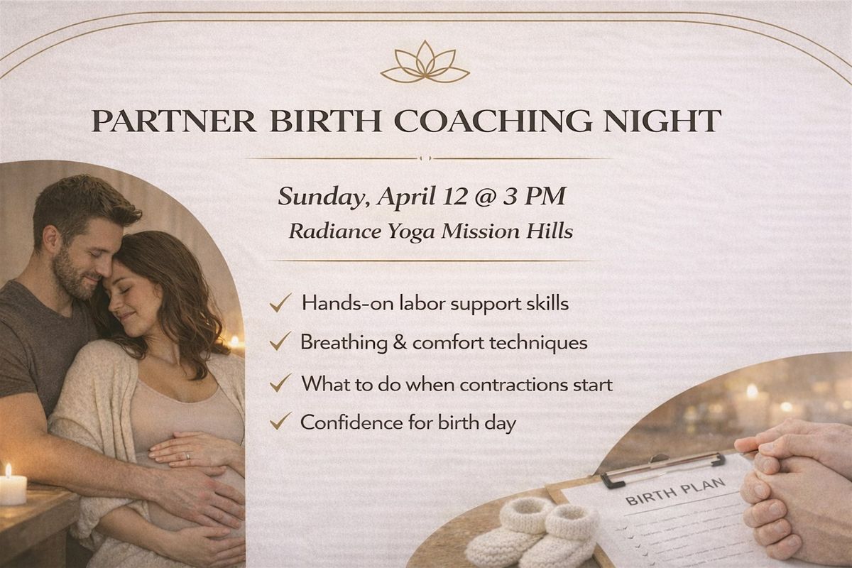 Join us in the heart of Mission Hills at Radiance Yoga for a practical, supportive night designed for you and your partner to feel prepared, connected, and calm as birth approaches.