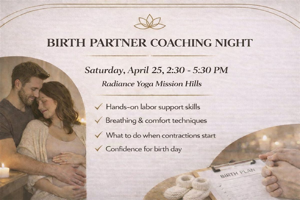 Join us in the heart of Mission Hills at Radiance Yoga for a practical, supportive night designed for you and your partner to feel prepared, connected, and calm as birth approaches.