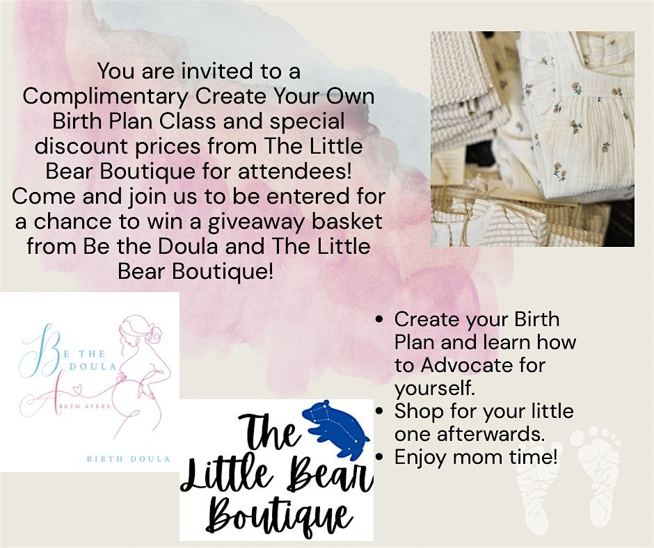Create your natural birth plan with Be the Doula and shop at a special discount at Little Bear Boutique!