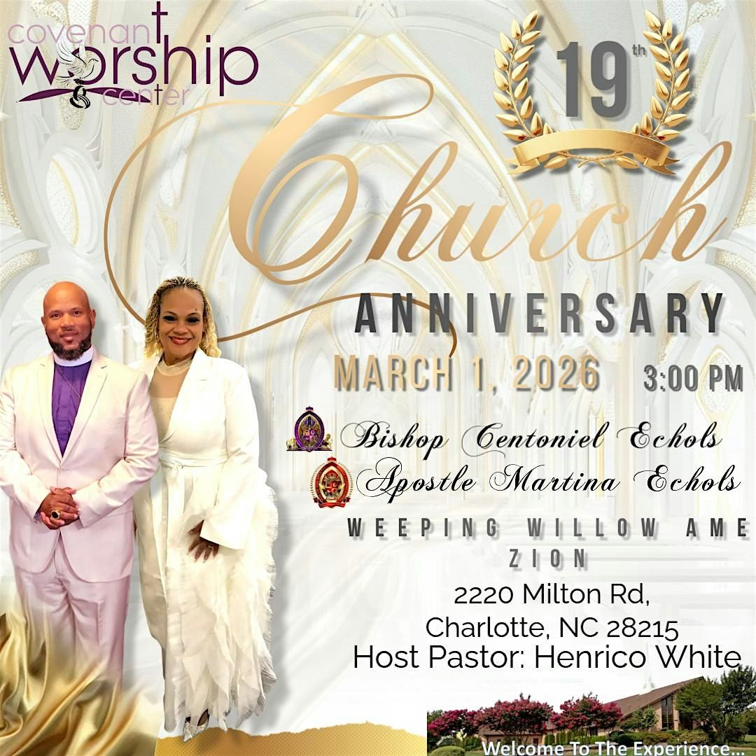 Join us for a special afternoon of celebration as we honor Bishop Centoniel and Apostle Martina Echols on the occasion of their 19th Pastoral Anniversary.