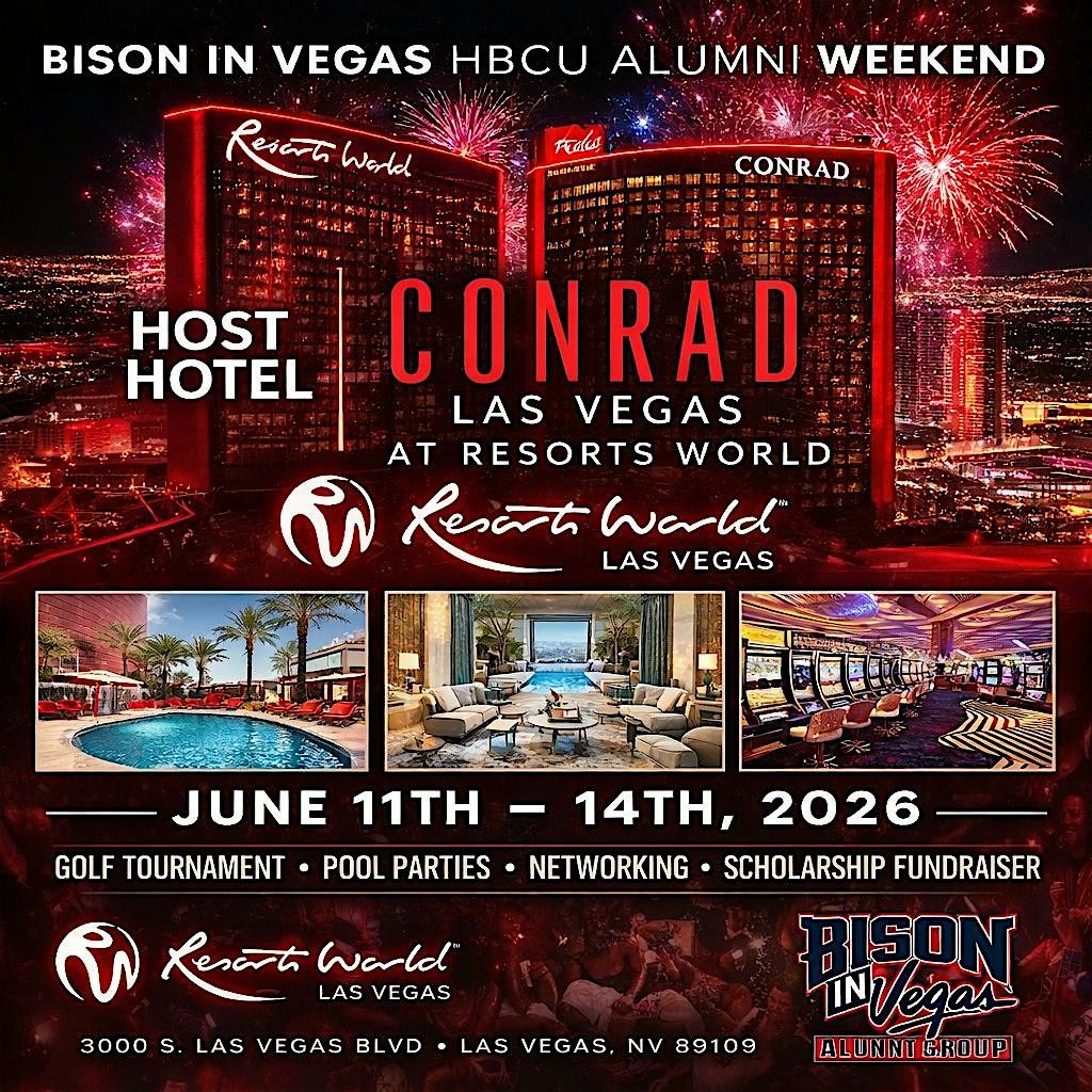 Resorts World Las Vegas proudly serves as the official host hotel for the Bison In Vegas HBCU Alumni Weekend, offering guests an elevated luxury experience in the heart of the Las Vegas Strip. Home to the elegant Conrad Las Vegas, this world-class resort features modern accommodations, exceptional dining, vibrant nightlife, and state-of-the-art entertainment. With its expansive pool complex, upscale casino, premier shopping, and dynamic social spaces, Resorts World provides the perfect setting for alumni to reconnect, celebrate HBCU pride, and enjoy an unforgettable weekend of networking, entertainment, and scholarship fundraising.