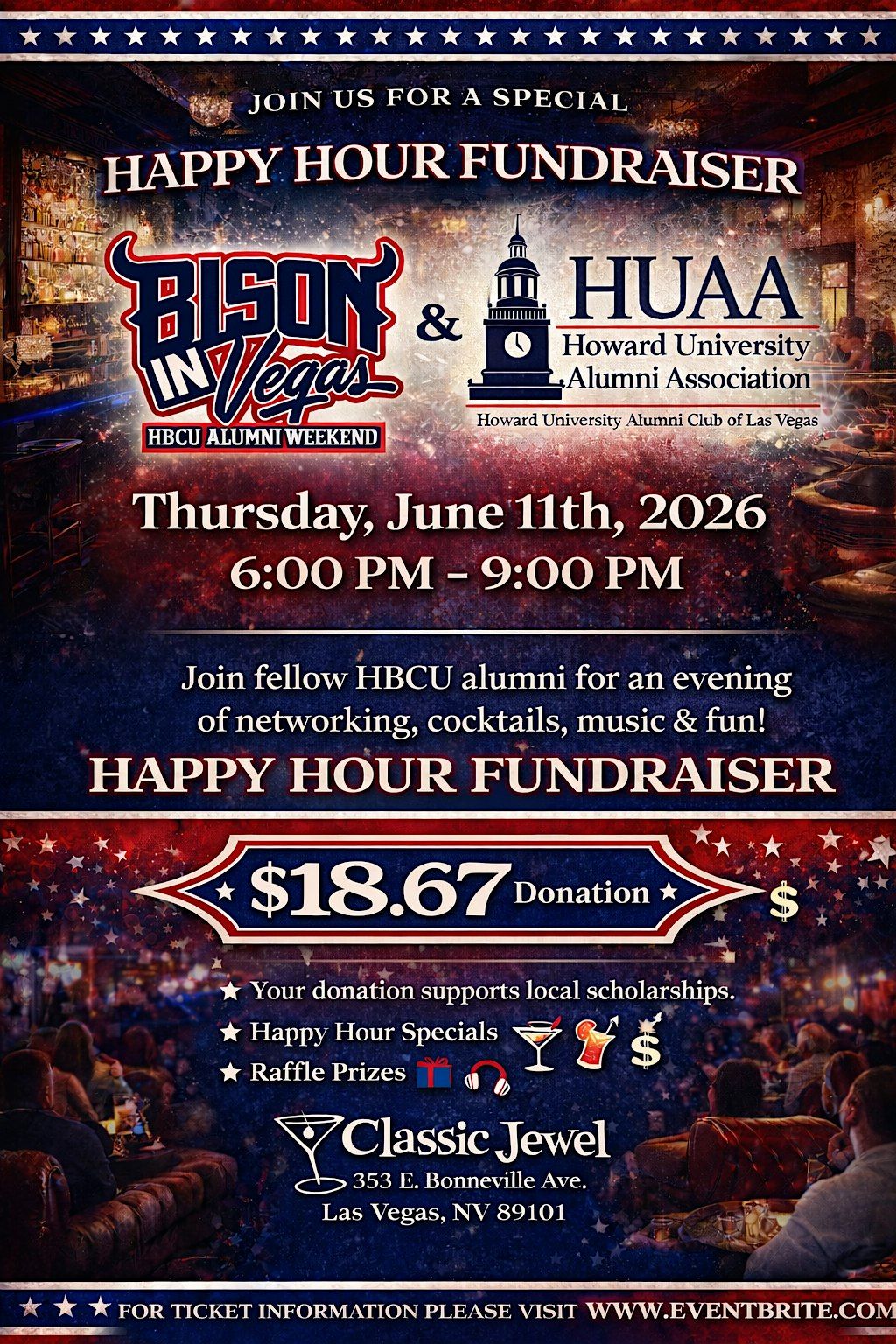 The Bison In Vegas HBCU Alumni Group and the Howard University Alumni Club of Las Vegas invite alumni, friends, and supporters to join us for an exciting Happy Hour Fundraiser on Thursday, June 11, 2026, at the stylish Classic Jewel Lounge in downtown Las Vegas. This special evening will bring together HBCU alumni and community leaders for networking, cocktails, music, and fellowship while raising funds to support scholarship initiatives and alumni programming. Guests will enjoy happy hour specials, raffle prizes, and a vibrant atmosphere as we celebrate HBCU pride and strengthen our alumni community in Las Vegas.