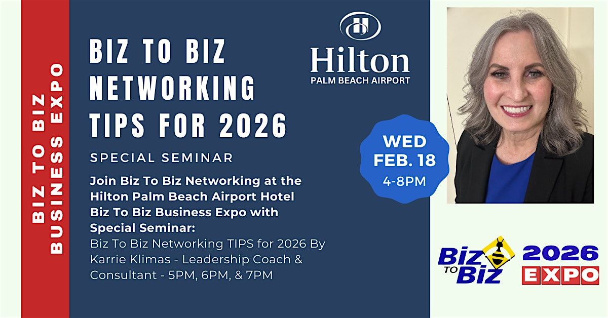 The Hilton Palm Beach Airport Hotel - Business Expo with Special Seminar: Biz To Biz Networking TIPS for 2026 By Karrie Klimas - Leadership Coach & Consultant - FREE SEMINAR