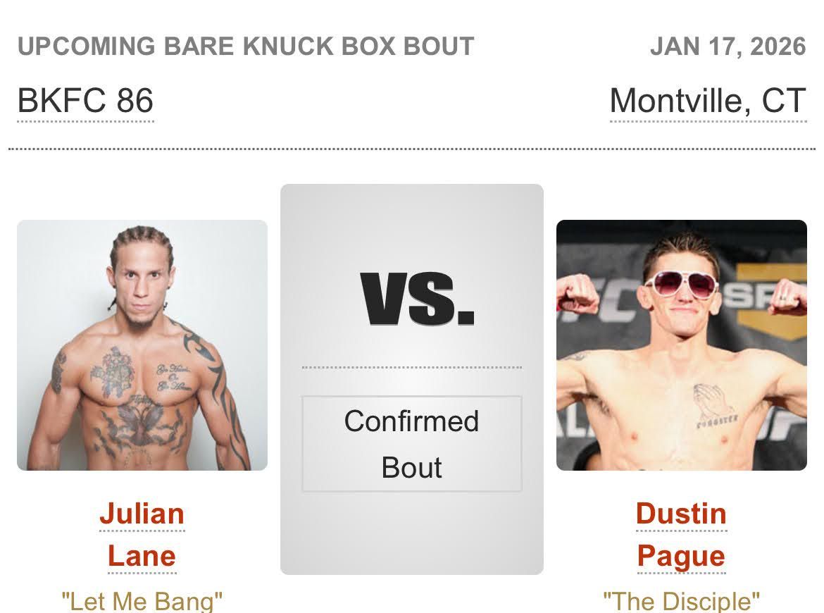 ✨ Experience the magic of BKFC 86: Julian Lane vs Dustin Pague at Mohegan Sun Arena-CT, where moments become memories that last a lifetime! 🏛️ The iconic Mohegan Sun Arena-CT in Uncasville, CT sets the perfect stage for an unforgettable celebration on January 17th, 2026 at 06:00 PM. 🌟 It's been a curated experience that brings together the best of entertainment and innovation, creating an atmosphere of wonder and excitement. From the moment you arrive, you'll be immersed in a world where the ordinary transforms into the extraordinary. 🎊 Book early to secure your place in what promises to be an event that will be talked about for years to come!