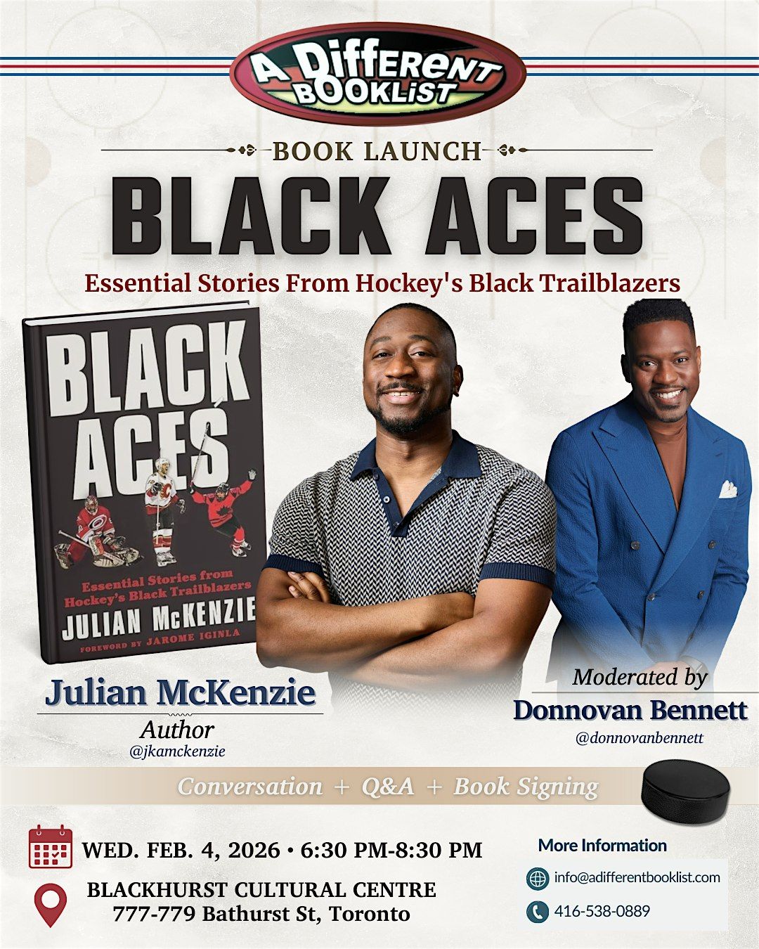 Join us for the book launch of Black Aces: Essential Stories from Hockey’s Black Trailblazers by Julian McKenzie, moderated by Donnovan Bennett.