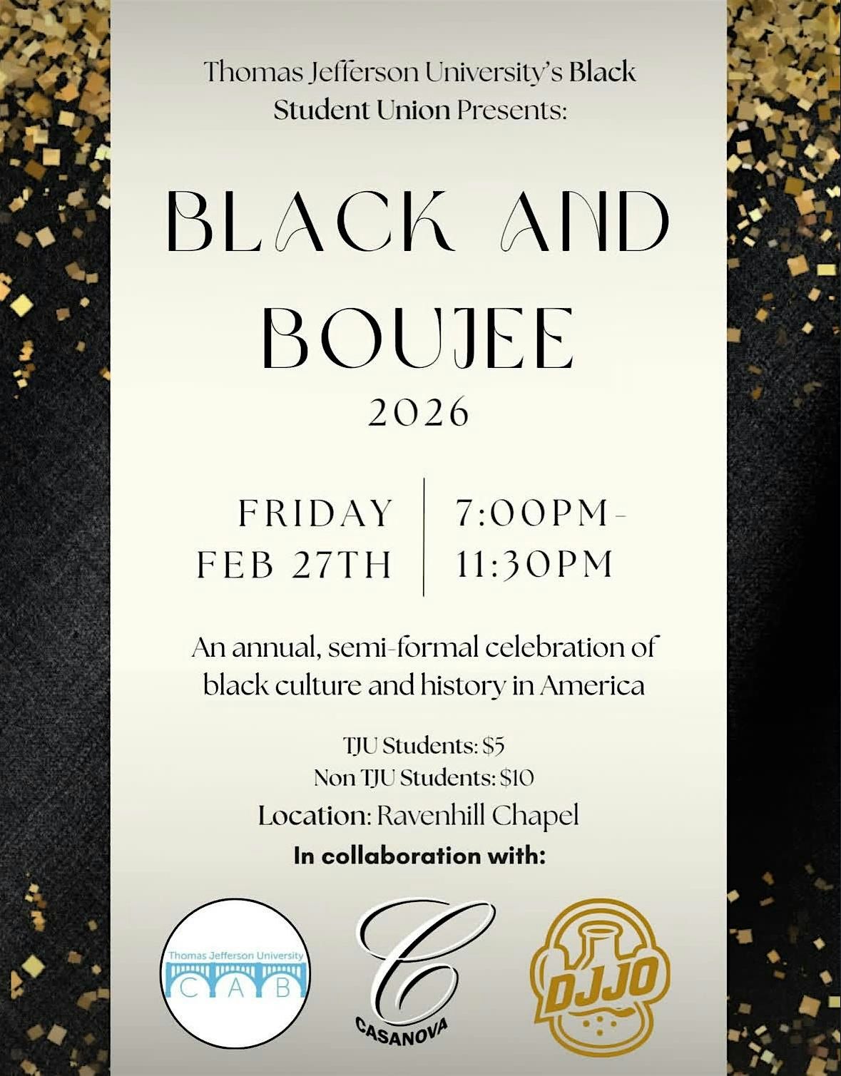 Black and bougie is a celebration of black history and students on jefferson campus. Expect to see special greek life preformances as well as food and good music. This is a semi-formal event color scheme is black and gold.