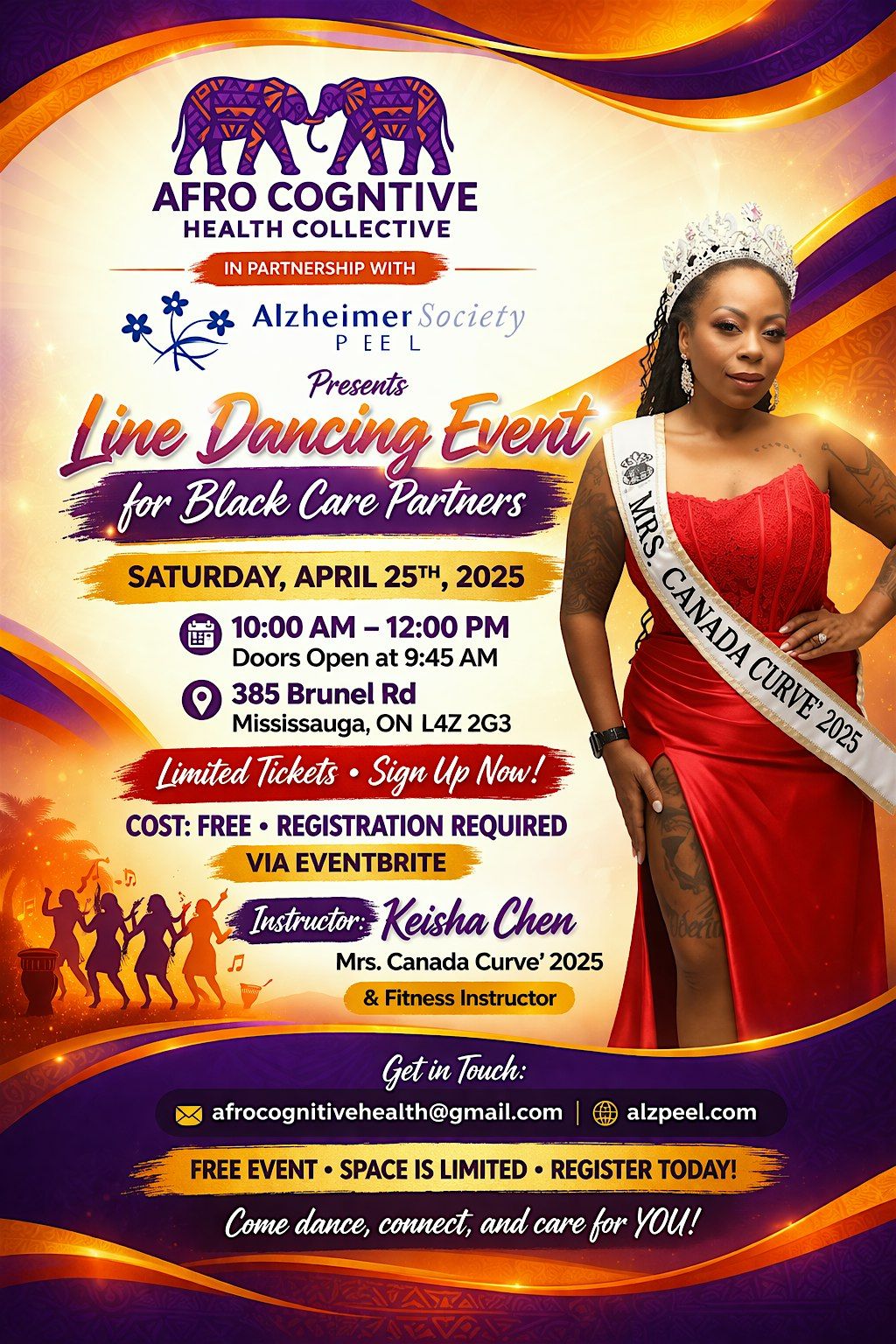 Afro Cognitive Health Collective in partnership with Alzheimer’s Society of Peel presents Line Dancing with with Mrs. Canada Curve’ 2025!