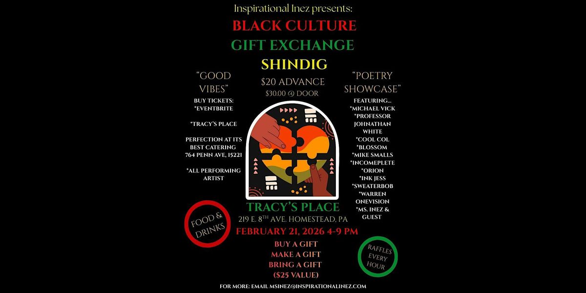 The Black Culture Gift Exchange Shindig is happening at Tracy's Place! Get ready for an inspiring evening celebrating Black gifts, art and culture.