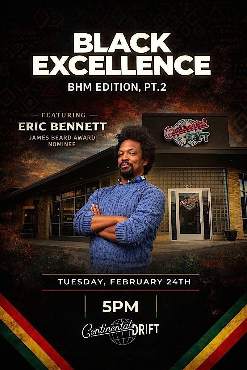 This is the perfect time to return and celebrate Birmingham and Black History Month at Continental Drift as Eric Bennett is the only Black James Beard Nominee in Alabama this year. If you have joined us before, welcome back. If you have never been, ask someone and check out the links below to past iterations. Black professionals. Black culture. Black vibes. Special thanks to the Black Excellence Group, Greater Birmingham CVB, Magic City Sips, Magic City Bar Association, State Representative Kelvin Datcher and others who remain nameless but wanted to ensure everyone has a good time.