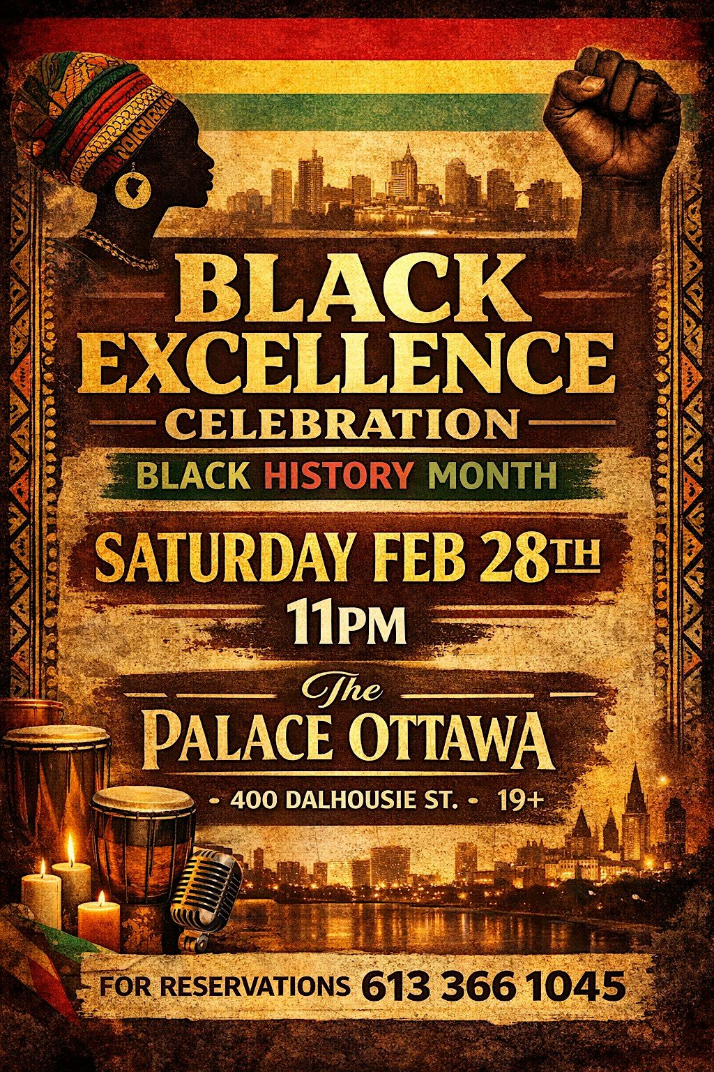 Join us for an unforgettable night dedicated to celebrating Black culture, resilience, creativity, and excellence. This special event brings together community, music, and pride as we honour the legacy and impact of the African and Caribbean diaspora.