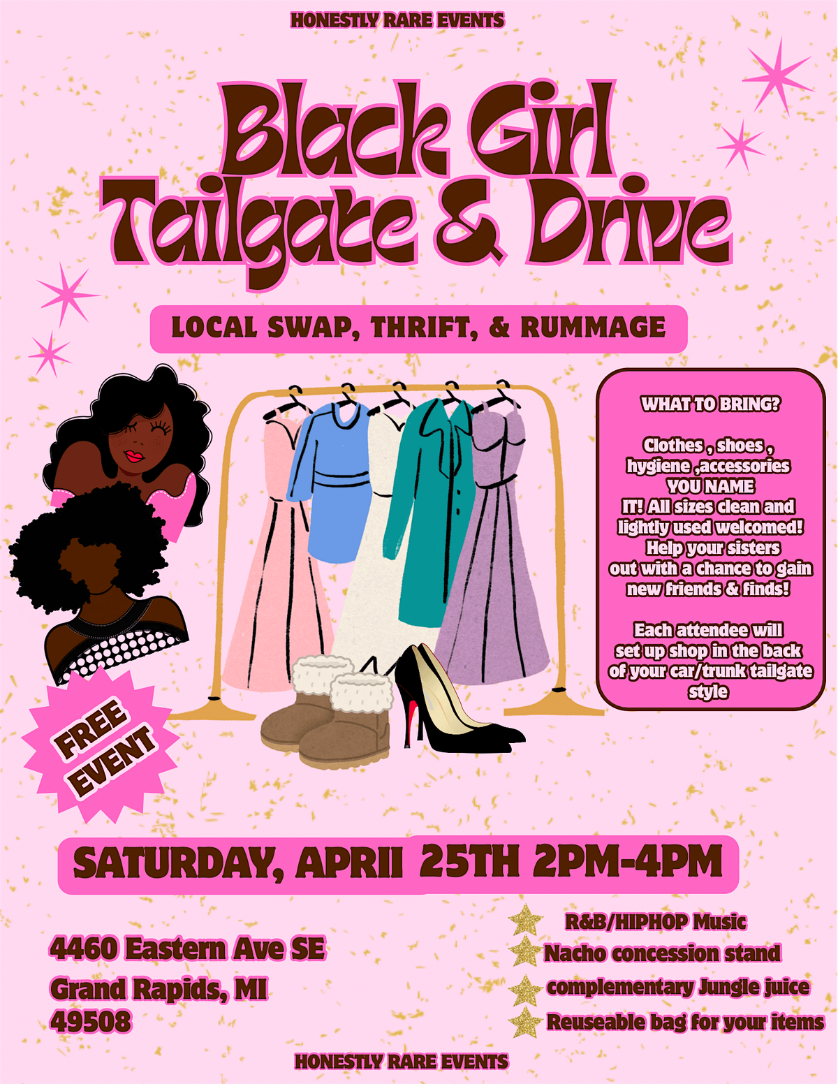 Don’t let a good time and good finds go to waste we’re hosting a Black Girl Tailgate & Drive. Provided by us for us!