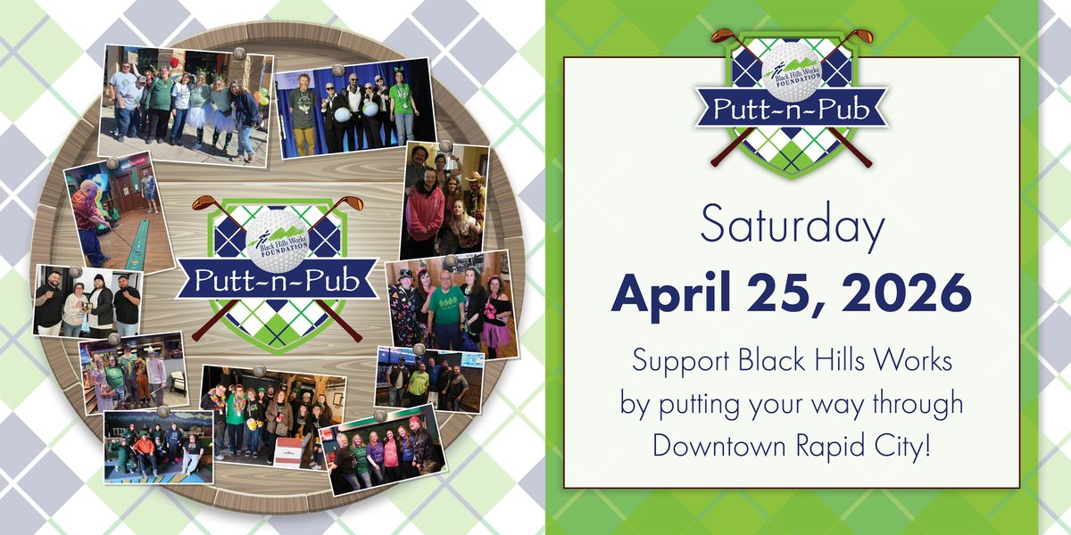 Black Hills Works Foundation's annual Putt-N-Pub fundraising event takes mini golf and combines it with a pub crawl to create a fun and social downtown experience for a great cause. Teams of four will compete in a mini-golf tournament featuring holes uniquely designed by our host locations while enjoying Rapid City’s local bar scene.
