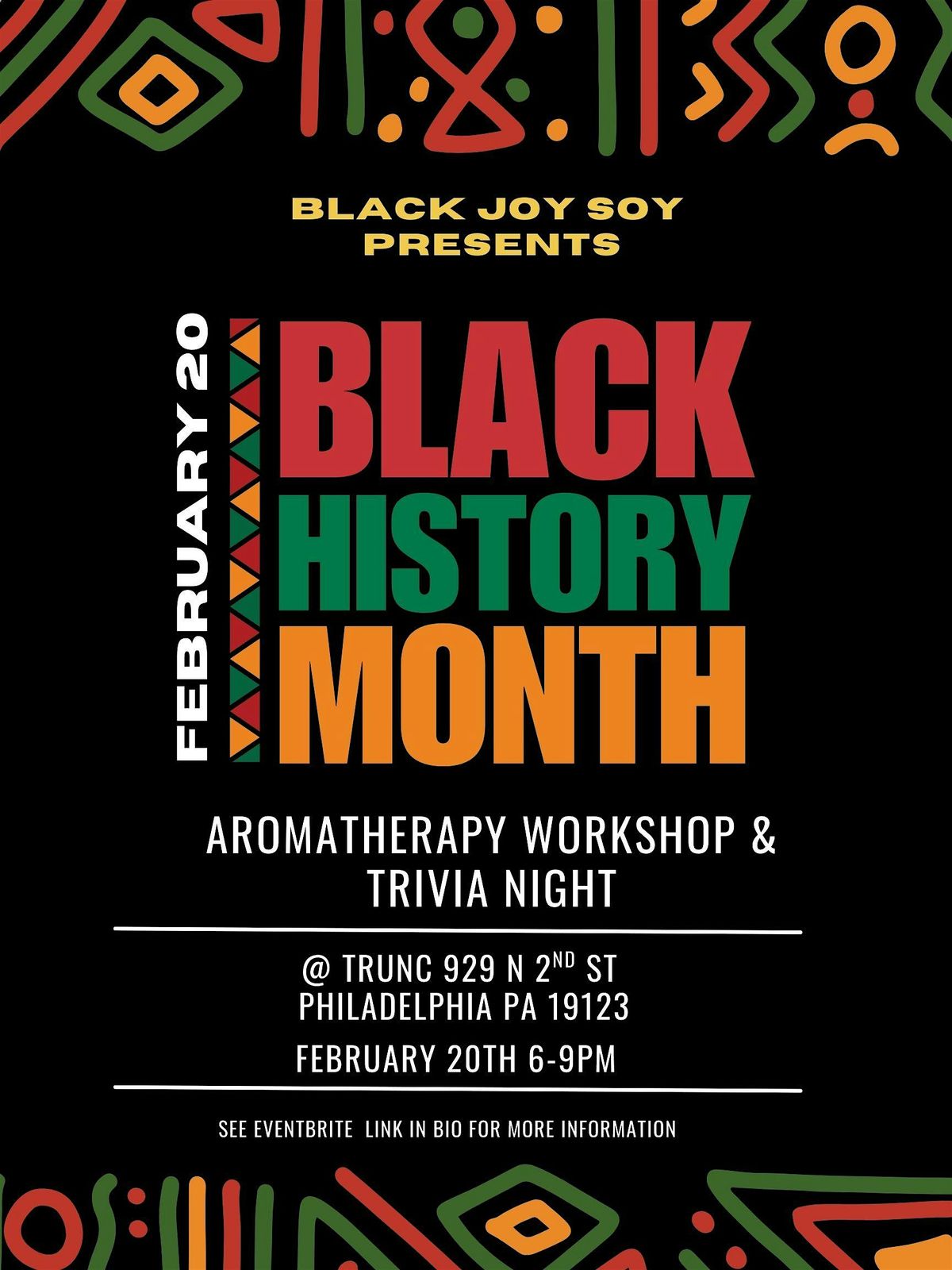 Welcome to the Black History Month Aromatherapy Workshop and Trivia Night! Join us at Trunc on February 20, 2026 at 6:00 PM for an evening filled with relaxation and fun.