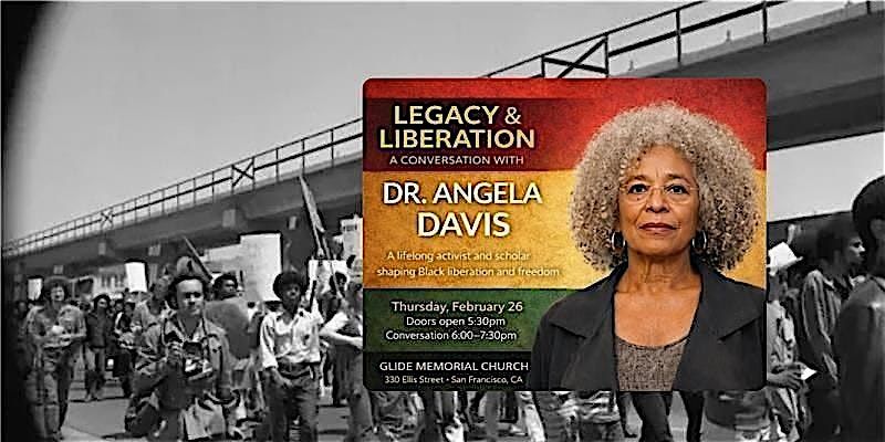 Join us for Black History Month: Legacy and Liberation- A Conversation with Angela Davis happening at Glide Memorial Church on February 26th, 2026 at 6:00 PM . Join us for an insightful discussion with the legendary Angela Davis as we delve into the rich history and ongoing struggles for Black liberation. This event promises to be a powerful exploration of her legacy, past and present, and the future of the Black community.