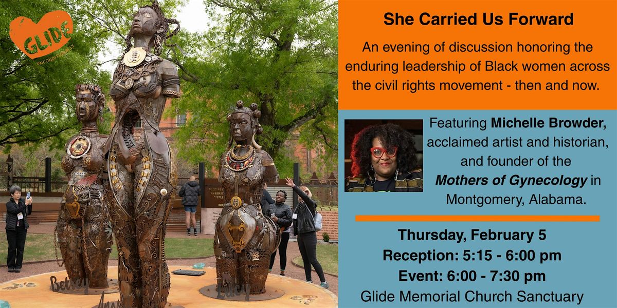 This Black History Month, GLIDE presents She Carried Us Forward, an evening honoring the brilliance, courage, creativity, and enduring leadership of Black women across the civil rights movement - then and now.